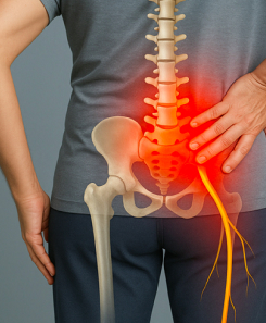 As irritation builds, pain may travel from the lower back into the hip, buttock, or down the leg. Symptoms often worsen with sitting, bending, or long periods of inactivity.
